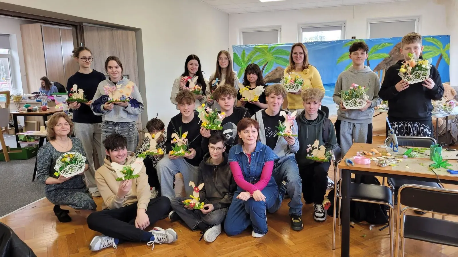 Sirsnīga un iedvesmojoša pieredze tika gūta ergoterapijas meistarklasē biedrībā “Švietlik” (Stowarzyszenie „Świetlik”), kuras laikā ar lielu aizrautību visi kopā – gan audzēkņi un pedagogi, gan biedrības dalībnieki ar speciālām vajadzībām – darbojāmies, veidojot krāsainus Lieldienu dekorus. Darbnīcā valdīja sirsnīga, radoša un ļoti pozitīva atmosfēra, kur ikviens varēja iesaistīties un radīt ko skaistu. Darinātos svētku dekorus kā siltu sveicienu un starptautiskās sadarbības simbolu atvedām arī uz Latviju – dāvanā mūsu skolai.
